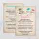 Esta caprichosa y romántica tarjeta de recepción de boda de pájaros de amor y tarjeta de información de alojamiento tiene un par de pájaros de amor en tonos rosa y azul turquesa con un par de corazones rojos flotando entre ellos mientras se sientan en una rama de flor de cerezo marrón que tiene hojas taupe y gris y una jaula de pájaros ornamentada con volutas que coincide con la invitación de boda que se muestra a continuación. El fondo tiene un aspecto de tela de lino envejecido falso que se presta bien a este diseño shabby chic. También se puede utilizar como tarjeta de registro de regalos, tarjeta de deseos, tarjeta de direcciones o como tarjeta de información general. Se muestra aquí en papel básico. Se personaliza fácilmente con su propia información. ****Tenga en cuenta que todo se imprimirá tal como aparece en su monitor. Zazzle no editará nada para errores tipográficos o desalineación, etc., y yo no lo veré una vez que haya realizado el pedido. Si necesita ayuda con su redacción, por favor envíeme un correo electrónico ANTES de realizar el pedido. Si hay algún otro artículo que necesite para hacer