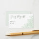 Este diseño forma parte de una colección que presenta un diseño sencillo de eucalipto en una paleta de colores verde y blanco. Esta tarjeta de petición de canción sería perfecta para salir en una cabina de DJ en su boda o fiesta. Si lo prefiere, puede incluirla con sus invitaciones para que los huéspedes las rellenen con antelación y regresen con el rsvp.