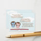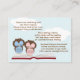 Los búhos gemelos se posan sobre un libro abierto sobre un fondo azul cielo. Un poema encantador pide a los invitados que traigan un libro para los bebés y que inicien a la nueva madre con una biblioteca de libros para niños queridos. Simplemente inserte esta tarjeta dulce dentro del sobre de la ducha para bebés, y sus invitados sabrán lo que se necesita para empezar a leer al bebé.