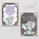 Reserva un billete para Biblioteca para Bebé, Reserva una tarjeta de solicitud para una ducha Chica elefante rosa, morado y maní amarillo.