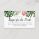 Tarjeta de inserción para ducha nupcial / boda con tema tropical moderno con ilustración de acuarela de hojas verdes que incluyen flor de monstera, palma y protea del rey rosa. La tarjeta pide a los invitados que completen la tarjeta de receta y la traigan a la ducha. ¡Envíe esta tarjeta junto con la tarjeta de receta coincidente en mi tienda!