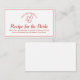 Invite a los huéspedes a compartir su amor culinario con esta encantadora tarjeta de inserción "Receta para la novia", diseñada para complementar una ducha de inspiración italiana. Con una frontera de cuadros rojos y blancos, evoca el ambiente acogedor de una cocina italiana tradicional, que ofrece el tono perfecto para una cálida celebración centrada en la familia. Animar a los huéspedes a traer una receta favorita, creando una colección de keepsake para la novia que está llena de amor, tradición y deliciosos recuerdos. ¡Un toque de corazón que une a todos para compartir sus mejores platos y sus recetas más preciadas!