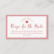 Invite a los huéspedes a compartir su amor culinario con esta encantadora tarjeta de inserción "Receta para la novia", diseñada para complementar una ducha de inspiración italiana. Con una frontera de cuadros rojos y blancos, evoca el ambiente acogedor de una cocina italiana tradicional, que ofrece el tono perfecto para una cálida celebración centrada en la familia. Animar a los huéspedes a traer una receta favorita, creando una colección de keepsake para la novia que está llena de amor, tradición y deliciosos recuerdos. ¡Un toque de corazón que une a todos para compartir sus mejores platos y sus recetas más preciadas!