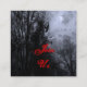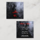 Un boleto de evento con tamaño de tarjeta de visita cuadrada para personalizados o una invitación con letras de pistola en el fondo de un espeluznante cielo de Halloween con árboles nublados a lo largo de un oscuro camino embrujado, cuervos góticos y una nublada luna llena con una bruma azul. Personalizar Para cambiar fuentes, agregar texto, incluso guardar el diseño para más adelante.