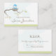 Tarjeta R.S.V.P. de pájaro bebé azul personalizable (2,5" x 3,5"). Estos no vienen con sobres pero una simple búsqueda en internet proporcionará muchas tiendas que venden este sobre de tamaño. Coincide con la invitación azul a los pájaros bebés, tarjeta de agradecimiento, favor pegatina y sello.