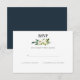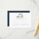 La tarjeta White Bloom Bouquet RSVP Card incluye un pequeño ilustracion acuático con rosas blancas con ramo de vegetación, la fecha de respuesta deseada y la aceptación y decadencia del personalizado. Termine su diseño personalizando sus opciones de comida o incorporando las selecciones que hay debajo. El diseño se termina con un fondo marino en el reverso.