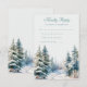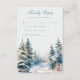 Fije el tono de su boda de invierno con esta romántica tarjeta RSVP que presenta una escena boscosa nevada y una caligrafía elegante. Ideal para ceremonias rústicas en los bosques, elopements de montaña o bodas de vacaciones acogedores, este diseño le aporta un toque de magia de invierno a su día especial. Personalizar con sus nombres, fechas y detalles. Complete el aspecto con tarjetas de detalle y RSVP coincidentes en nuestra suite Boda Winter Forest.