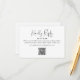 Diseño de caligrafía moderna con código QR y redacción personalizada para la selección de comidas. La parte trasera tiene un lugar para tu foto especial con un borde gris claro y el nombre de la pareja debajo. También se puede dejar en blanco.