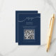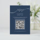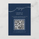 Esta sencilla y elegante tarjeta RSVP de código QR azul marino es perfecta para su boda clásico mínimo de color azul marino. Con la combinación perfecta de caligrafía elegante y romántica y estética chic y desagradable, simplemente añada tu propio código QR y sitio web boda. Personaliza el texto para leer lo que quieras.