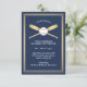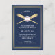 Compliquen invitaciones de color azul marino y oro con elegantes tarjetas de caja de recepción/detalles fiestas con temas de béisbol. Todo el texto es sencillo de personalizar o de supresión, por lo que es adecuado para cualquier tipo de evento con una recepción posterior a un servicio o ceremonia. Esta plantilla de tarjeta también incluye espacio en la parte de atrás para detalles adicionales de celebración de su elección, como direcciones, sitios web, solicitudes especiales, revisión, directrices de enmascaramiento y distanciamiento social, medidas de seguridad pandémicas codificadas, etc. El diseño presenta un borde de Relieve metalizado azul marino, blanco y dorado, rayas modernas y una tipografía de inspiración Art Déco clásica. Tenga en cuenta que el oro es color impreso, no Relieve metalizado metálico.