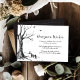 Envíe a sus invitados sus deseos añadiendo esta tarjeta de Descanso de luna de miel junto con su invitación a la boda. El sencillo diseño gótico incluye árboles esbozados, murciélagos y una telaraña. El fondo está decorado con cuadros blancos decorativos sobre un fondo negro. Los artículos del boda de coordinación están disponibles (se venden por separado). Los elementos coincidentes se pueden encontrar en nuestra colección 'All Hallow Eve'.