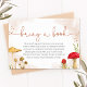 Con un diseño sencillo, esta pequeña ducha de madera le lleva una tarjeta de lectura perfecta para el tema de otoño, decoración de fiesta con decoración de otoño. Tiene setas silvestres, follaje y ilustraciones forestales pintados a mano con acuarela. Perfecto para un juego de ducha para bebés.