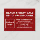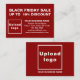 Atraer más clientes ofreciéndoles descuentos este Black Friday, una de las estrategias de marketing para tener más clientes. Tarjeta de gabinete de personalizable que puede utilizar para atraer a más clientes a comprar sus productos o clientes para que les gusten sus servicios. Tarjeta de inscripción con su marca comercial como material de marketing que también puede utilizar para crear conciencia de marca. Los colores de diseño son textos blancos sobre fondo rojo. Para personalizar de esta tarjeta de gabinete, especifique el porcentaje de descuento que va a ofrecer, cargue el logotipo de su empresa, escriba su nombre de negocio, dirección, número de teléfono, correo electrónico y sitio web o su página de red social comercial. Por favor, compruebe la apariencia en los lados delantero y trasero después de cargar el logotipo y escribir textos. Si la apariencia le resulta agradable, puede realizar su pedido ahora. Si necesita cambiar el tamaño y mover el logotipo y los textos para que encajen en esta tarjeta de gabinete, cambie la herramienta de diseño. También puede cambiar el color de fondo, el color de fuente y el estilo de fuente en la herramienta de diseño. Te deseo más ventas este Viernes Negro.