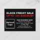 Atraer más clientes ofreciéndoles descuentos este Black Friday, una de las estrategias de marketing para tener más clientes. Tarjeta de gabinete de personalizable que puede utilizar para atraer a más clientes a comprar sus productos o clientes para que les gusten sus servicios. Tarjeta de inscripción con su marca comercial como material de marketing que también puede utilizar para crear conciencia de marca. Los colores de diseño son textos en rojo y blanco sobre fondo negro. Para personalizar de esta tarjeta de gabinete, especifique el porcentaje de descuento que va a ofrecer, cargue el logotipo de su empresa, escriba su nombre de negocio, dirección, número de teléfono, correo electrónico y sitio web o su página de red social comercial. Por favor, compruebe la apariencia en los lados delantero y trasero después de cargar el logotipo y escribir textos. Si la apariencia le resulta agradable, puede realizar su pedido ahora. Si necesita cambiar el tamaño y mover el logotipo y los textos para que encajen en esta tarjeta de gabinete, cambie la herramienta de diseño. También puede cambiar el color de fondo, el color de fuente y el estilo de fuente en la herramienta de diseño. Te deseo más ventas este Viernes Negro.