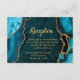 Esta elegante y glamurosa tarjeta de la recepción de la boda incluye un verde azulado fondo de mármol agate azul con falsos toques purpurinas de oro. El texto combina el guión manuscrito y las fuentes sans serif modernas para un aspecto elegante y sofisticado. Esto será perfecto para otoño y bodas de invierno.