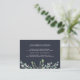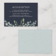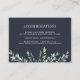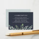 Desliza estas modas, tarjetas pequeñas en tus invitaciones nupciales para que los huéspedes conozcan los arreglos de hoteles o códigos de grupo. Diseñadas para coordinarse con nuestra colección de bodas Winter Sage, las tarjetas azul marino profundas cuentan con letras blancas con un borde de vegetación y follaje botánico acuático.