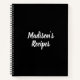 Receta de nombre personalizado Libro regalo de cumpleaños de la madre Bloc de notas puede personalizar del texto, nombre, etc. Letras blancas, fondo negro, espiral atado gran regalo para la madre!