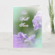 Diseño de imágenes Digitalbcon con un color púrpura y verde pastel con una variedad de imágenes, formas, patrones, estilos y fuentes personalizados en esta tarjeta de felicitación Get Well! Se completa con un diseño interior complementario con letras de texto personalizados que se adaptan a sus deseos.