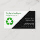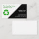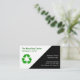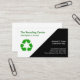 Reciclando tarjetas de visita con un diseño moderno que incluye un símbolo de reciclaje, y un diseño simple de tarjeta de visita que le permite personalizar el texto y cambiar el color de fondo negro si lo desea. Diseñé esta plantilla de tarjetas de visita como un diseño único y moderno para reciclaje de casas, reciclaje de basura o servicios de reciclaje de plástico.