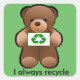 Recicle los compartimientos de los fors de los pegatinas, los cubos de la basura y otros artículos. Diversión inspiradora "reciclo" diseño del pegatina con el oso de peluche que la tenencia recicla símbolo. Oso de peluche respetuoso del medio ambiente.