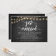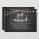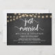 Recién casados, Anuncio de Boda Secreta / Tarjeta de invitación, en pizarra rústica de granja, diseño de luces de cuerda. Esto es perfecto para su recepción de boda y fiesta de celebración después de la boda. Agregue sus detalles en la fuente / letra coincidente.