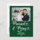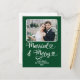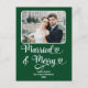Esta tarjeta de felicitación de foto personalizada "Married and Merry Our First Christmas" en verde bosque con corazones es la forma perfecta de celebrar la primera Navidad de una pareja recién casada, con su fuente limpia y moderna y colores clásicos de vacaciones, foto de la pareja, así como un mensaje personalizado en la parte posterior. El juguetón mensaje "Married and Merry" en esta tarjeta postal es una forma reflexiva y sentimental de celebrar su primera temporada de vacaciones juntos.
