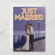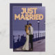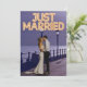 Este anuncio de boda personalizado presenta un diseño de foto personalizado divertido y romántico. La frase "Recién Casados" está impresa en la parte superior con luces de neón. Una foto de muestra de una pareja de recién casados tomada por la noche cubre el fondo que puedes personalizar para incluir tu propia foto personalizada de la pareja casada, o otra imagen de tu elección. Un anuncio de boda de muestra de la pareja recién casada está impreso en la parte posterior.