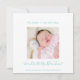 ¡Tu recién nacido ha llegado justo a tiempo para ver el año nuevo! Estarás reventando para anunciar la gran noticia a tu familia y amigos. Puede desearles un Feliz Año Nuevo al mismo tiempo con este moderno diseño divertido que es totalmente personalizable junto con su foto favorita de su nueva llegada. Tu foto favorita está en formato cuadrado en el centro, con mucho espacio blanco alrededor para darle un toque contemporáneo. Personalice fácilmente el texto en la parte delantera y trasera con el suyo propio, incluyendo todos los detalles de su nueva llegada en la parte posterior, y simplemente reemplace la foto de ejemplo en el marcador de posición de la plantilla por la suya propia. También puede cambiar el fondo y los colores del texto en ambos lados si lo desea a través del personalizar.
