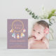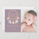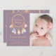 Un rayo de soñador bohemio tribal con abalorios y plumas en colores pastel. La tarjeta de anuncio de nacimiento neutra de género se puede usar para un niño o un chica. Personalizar con la foto e información de su bebé.