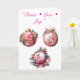 Celebra la belleza de la temporada con esta elegante tarjeta de Navidades con tres grandes baudias rosas adornadas con rosas y follaje verde festivo. Una moda y un diseño navideño femenino, perfecto para enviar cálidos Navidades deseos a amigos, familiares y seres queridos.