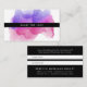 Aliente a sus clientes y clientes a compartir el amor con estas tarjetas de visita de referencia de acuarela de moda. El frente presenta una sola línea de texto personalizado en blanco sobre negro, sobre un fondo de manchas de pintura acuarela en tonos brillantes de rosa fucsia, magenta y morado. Agregue la información de contacto y los términos de referencia al reverso utilizando los campos de plantilla proporcionados. Incluye espacio para los nombres de los remitentes y nuevos clientes.