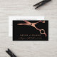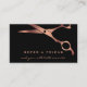 Barber Shop Hairdresser Tarjeta de referencia de cobre negro. Esta colección diseñada para ofrecerle las herramientas que necesita para iniciar su negocio, incluye elementos con fondo negro y tijeras de cobre. Con una lista de servicios, un signo de bienvenida, una tarjeta de referencia y más artículos coincidentes, este paquete incluye todo lo que necesita para atraer nuevos clientes y recompensar a los más fieles.