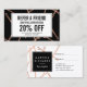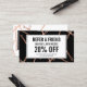 Coordina con la plantilla de tarjeta de visita negra estilo Hair Rosa de Moda Gold Bobby Pins para 1201AM. Un diseño divertido y llamativo de los falsos rosas de bobby de oro en caída crea un entorno intrigante en esta elegante tarjeta de referencia para peluqueros, peluquerías, consultores de belleza y más. Actualice la promoción de su propia oferta. Arte y diseño © 1201AM CREATIVE