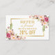 Esta elegante tarjeta de referencia de salón de belleza floral es la manera perfecta de recompensar a sus clientes actuales por remitir nuevos negocios a su salón. Con un diseño elegante y sofisticado, esta tarjeta de referencia presenta un hermoso patrón floral en tonos rosa y dorado, con un fondo blanco y nítido. Simplemente repartirá estas tarjetas a sus clientes actuales y, cuando remitan a un amigo, podrán presentar la tarjeta para recibir un descuento especial o una oferta en su próxima visita. Ideal para salones de belleza que buscan atraer nuevos negocios y premiar a clientes fieles.