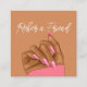 Una elegante tarjeta de referencia para artistas de uñas afroamericanos diseñada para animar a los clientes a dirigirse a amigos y familiares. La tarjeta incluye el nombre del artista, los datos de contacto y un incentivo o descuento especial de referencia. Con un diseño elegante y profesional, incluye un espacio tanto para el cliente que hace referencia como para la información del nuevo cliente, lo que garantiza un toque personal al mismo tiempo que promueve el crecimiento del negocio. Perfecto para salones o artistas individuales que buscan ampliar su clientela.
