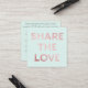 Comparta el amor en suavidad magnífica se ruborizan tipografía brillante rosada con el fondo azul de menta suave. Simple, elegante, tarjetas de la remisión de la casilla blanca del diseñador que vienen en paquetes de 100. ¡Muy asequible aproximadamente 25 centavos cada uno!