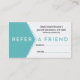 Tarjeta de presentación de referencia de entrenador de fitness. Tarjeta de visita de personalizado con promoción de referencia para recompensar a sus clientes por remitir a sus amigos. Ideal para la comercialización de su gimnasio o estudio. Introduzca en su propia promoción, renuncias de responsabilidad e información de la empresa. Ideal para un gimnasio, un instructor de gimnasia, un entrenador personal o un campamento de entrenamiento.