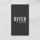 Tarjeta de referencia simple de personalizable gris oscuro y blanco para profesionales relacionados con la belleza. Diseño sencillo y limpio, personalizable completo.