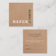 Tarjeta de referencia de personalizable cuadrado moderna para profesionales relacionados con la belleza. Diseño sencillo y limpio con fondo de kraft IMPRESO, personalizable completo.