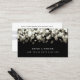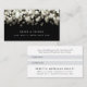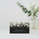 Las tarjetas de referencia de moda presentan su oferta de referencia en blanco sobre fondo negro con un borde superior de luminosas luces de bokeh en tonos blancos y champán. Agregue los términos de referencia y la información de contacto al reverso, con espacio para los nombres de sus clientes.