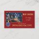 Tarjeta de visita de referencia para navidades con su propio logo en un fondo rojo con un ilustracion de una casa y un contorno de árbol de Navidad con copos de nieve festivos. En la parte posterior está la foto de su personalizado y una plantilla de código QR sobre rojo y oro. Una gran tarjeta de visita para un agente inmobiliario y personalizable para otros profesionales.