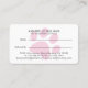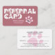 Moderna tarjeta de remisión diseñada para clínicas veterinarias, mascotas, caminantes de perros, servicios de cuidado de mascotas, etc. El diseño incluye la escritura tipográfica "tarjeta de referencia" con íconos de animales sobre el fondo de oro rosa, descuento de referencia e impresión de pata en la parte delantera. Personalice con más detalles en la parte posterior.