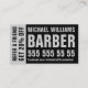 Tarjeta de referencia moderna en negro y gris, texto en negrita, llamativo, notable, masculino. Ideal para los barberos de libre acceso que empiezan su carrera.