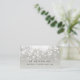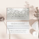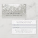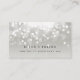 Las tarjetas de referencia de moda incluyen su oferta de referencia en letras negras clásicas en un fondo gris plateado adornado con una ráfaga de luces blancas de bokeh en la parte superior. Agregue los términos de referencia y la información de contacto al reverso, con espacio para los nombres de sus clientes.