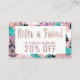 Esta acuarela rosada y verde azulada femenina y elegante con falso oro color de rosa impreso y se ruboriza los ilustraciones florales rosados imprime, refiere a un amigo que la tarjeta de la remisión del descuento es perfecta para el propietario de negocio de moda y elegante. Esta tarjeta de mirada de moda y profesional es la de manera perfecta de mostrar a sus clientes que usted cuida sobre su negocio. Modifique esta tarjeta para requisitos particulares para cualquier negocio, apenas corrija el texto y añada sus propios detalles personales.