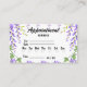 Hermosas y lindas flores moradas botánicas citas de jardín recordatorio de tarjetas de visita. El diseño presenta un jardín botánico con glicinas japonesas moradas, flores violetas, flores en flor y follaje verde con una tarjeta lateral sobre fondo blanco. plantilla de personalizable para peluquería, oficina de recordatorio de cliente, masaje, captación, odontología, médica médico y más.