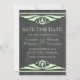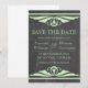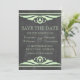 Elegante y moda Deco Chalkboard Guardar el anuncio de fecha con un toque de diseño de pizarra y un par de bordes de remolinos de arte verde claro. Esta encantadora invitación a guardar la fecha es perfecta para anunciar su boda temático de art deco de los años 20. Fácil de personalizar, simplemente añada los detalles de su boda. Haga clic en "Personalizar" para buscar opciones de personalización adicionales.