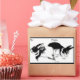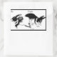 Rectangular Conejos blancos y negros jugando, Pegatina de etiq