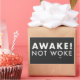 ¡Despierta! Pegatina de LOGO Not Woke™ (texto blanco). "La palabra 'AWAKE', en terminología social, se refiere a una persona que ha 'despertado', o se ha vuelto consciente en el modo de pensar. Esta "conciencia" del pensamiento se revela en lo que respecta a los temas políticos y sociales, de maneras como el pensamiento crítico y el discernimiento. El individuo despertado tiende a considerar profundamente los temas del día de una manera lógica y racional, y no salta a conclusiones precipitadas. El individuo despertado también gravita aún más hacia la auténtica compasión (compasión universal) y la paz incondicional. Tal vez lo más importante es que los que están realmente "despiertos" tienen una mente abierta hacia todo. Nada en relación con descubrimientos científicos o políticos y nociones en este mundo está "resuelto". El conocimiento humano está evolucionando y expandiéndose para siempre. Por último, el individuo despertado entiende que hay dos lados de todo dentro de la política: está la agenda y luego está la verdad oculta que amenaza la agenda". Cuartz, 2021.