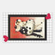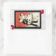 La popularidad de la pantomima a finales de la década de 1980 trajo un resurgimiento del triste payaso Pierrot. Aquí hay un pegatina rectangular que hace juego con nuestra invitación "Pierrot's Masquerade" con una imagen de un tablero de ajedrez gris y blanco y una imagen vintage de un Pierrot enmascarado y su amor Columbine sobre un fondo abstracto rojo y blanco con un borde negro. Consulte la invitación, sobre, etiqueta de regalo, etiqueta y papel de envoltura correspondiente. Ver toda la colección de Pegatinas Tubular 80 en los INVITES | Sección Pegatinas y etiquetas.